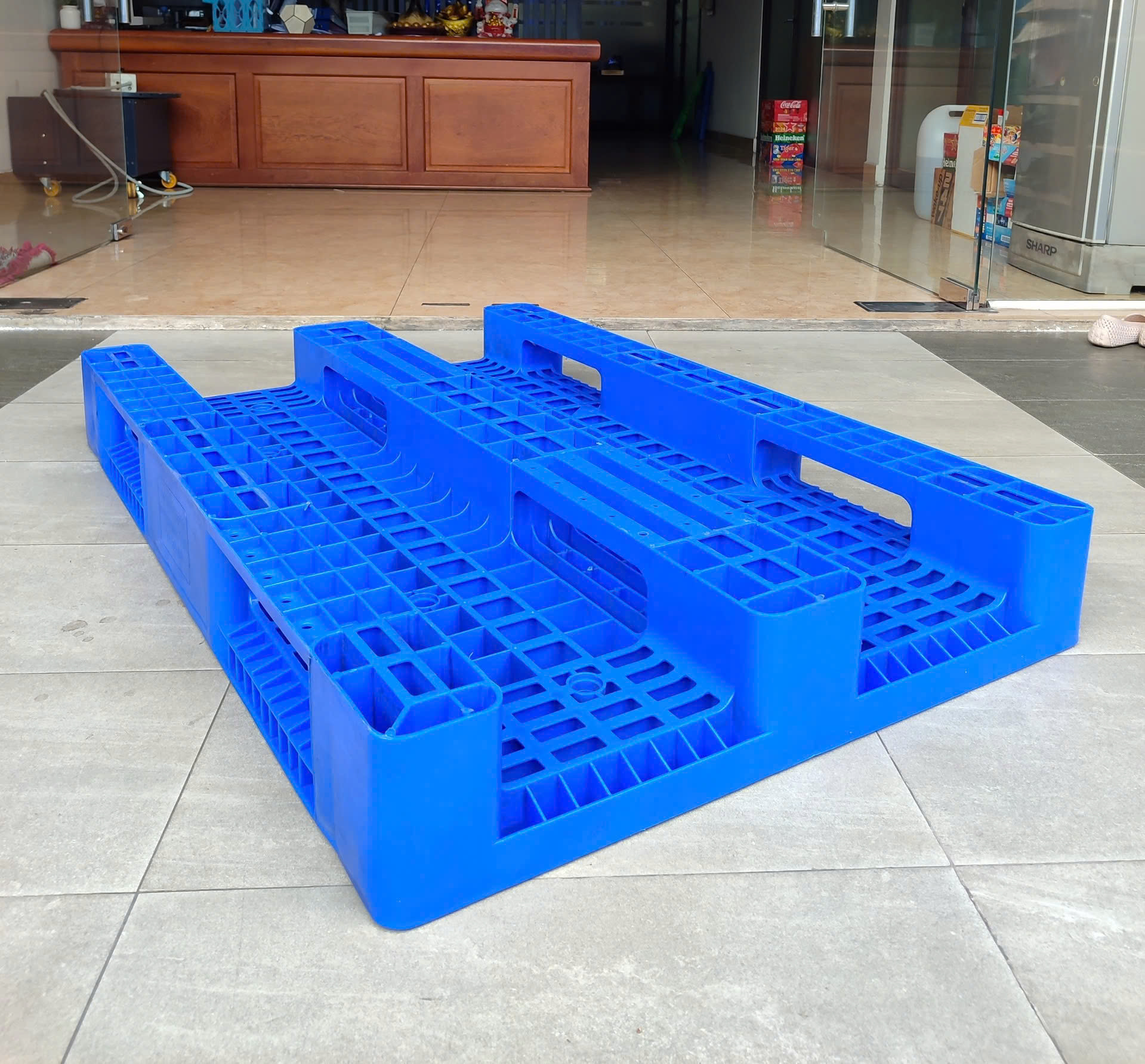 - Kho lạnh / kho thực phẩm / dược phẩm: Do pallet nhựa dễ vệ sinh, kháng ẩm, không mối mọt — rất phù hợp nơi đòi hỏi tiêu chuẩn vệ sinh cao.