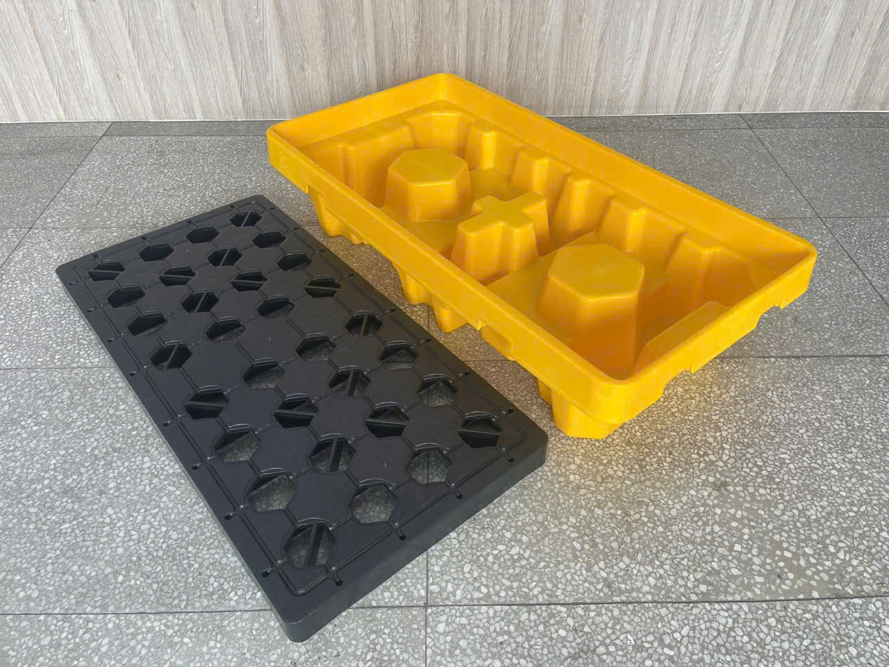 Pallet chống tràn được thiết kế để thu gom hoàn toàn lượng hóa chất rò rỉ từ thùng phuy trong quá trình lưu trữ, vận hành hoặc di chuyển.